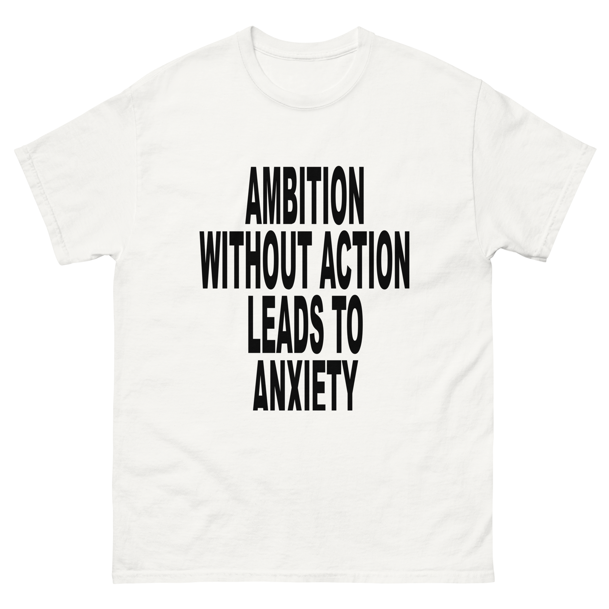 The “Ambition Without Action” Tee is a mirror for the restless. Stamped in industrial typography, it’s a reminder that big dreams mean nothing without movement — and stagnation breeds demons.